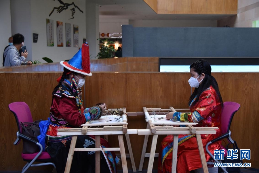 非遺祁連山板塊現(xiàn)場,海西蒙古族藏族自治州刺繡傳承人進(jìn)行非遺技藝展示。新華網(wǎng) 齊雨萌 攝