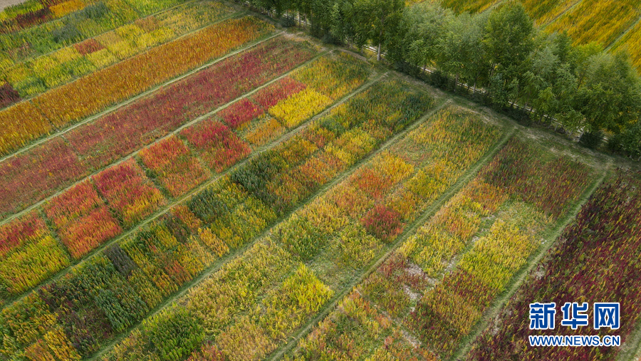 從高空俯瞰,藜麥田錯落有致,仿佛是大自然的調(diào)色盤。新華網(wǎng) 卡婭梅朵 攝