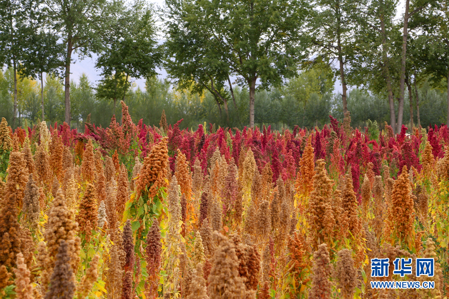 成熟的藜麥好似翻滾的紅色波濤。新華網(wǎng) 卡婭梅朵 攝