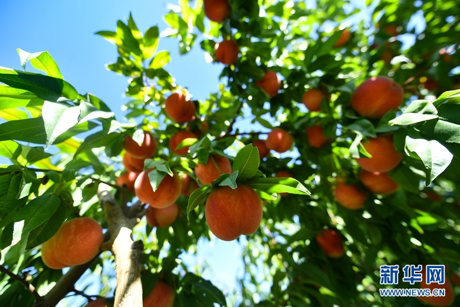 朱聯(lián)產承包的果園內,成熟的桃子掛滿枝頭。新華網 潘彬彬 攝