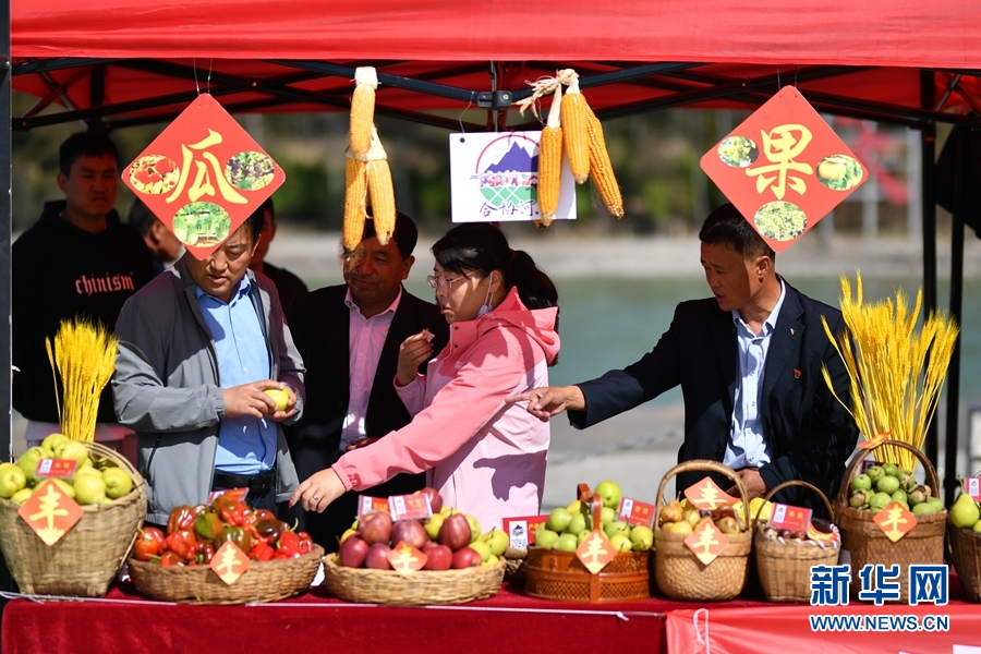 9月23日,貴德縣慶祝第四屆中國農民“豐收節(jié)”活動現場展示的當地水果。新華網 潘彬彬 攝