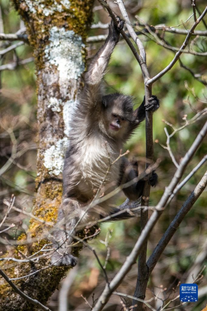 云南迪慶藏族自治州香格里拉滇金絲猴國(guó)家公園里的滇金絲猴(3月16日攝)。新華社記者 胡超 攝
