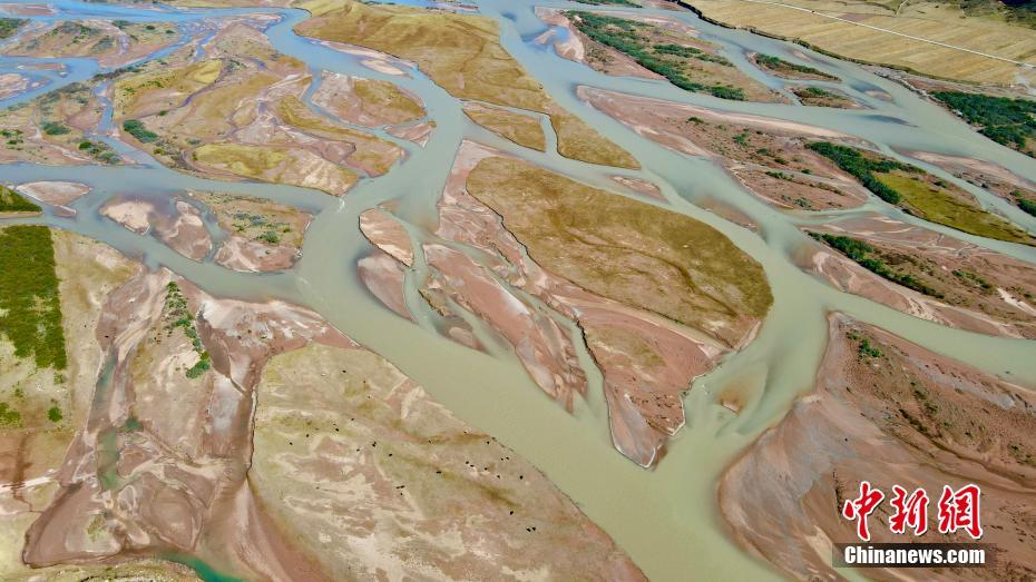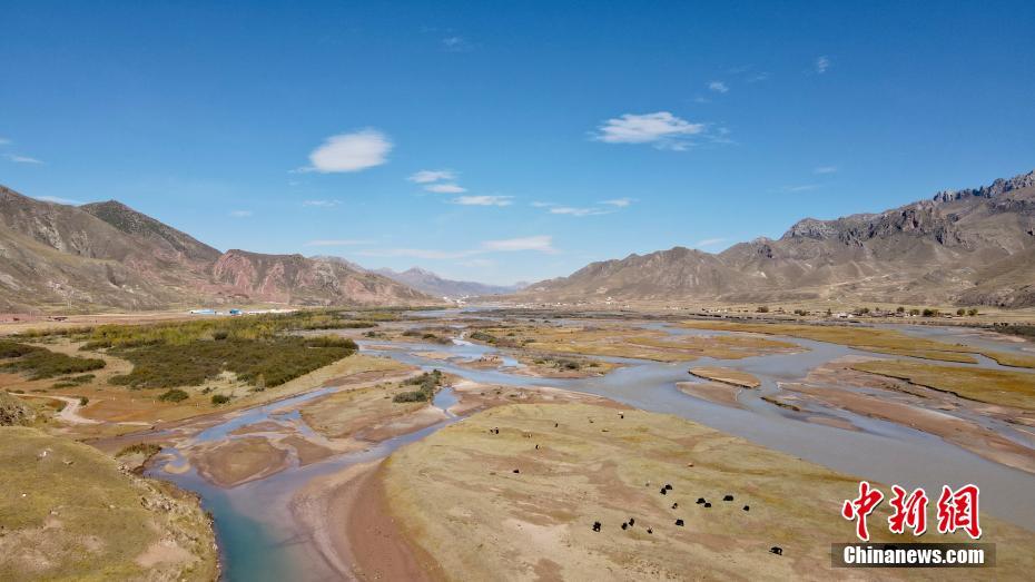 10月18日,航拍秋日的青海玉樹藏族自治州囊謙縣瀾滄江網(wǎng)狀水系,縱橫交錯(cuò)的水系,與周圍秋季泛黃的草原相襯,勾勒出了一幅絢麗畫卷。中新社記者 李江寧 攝