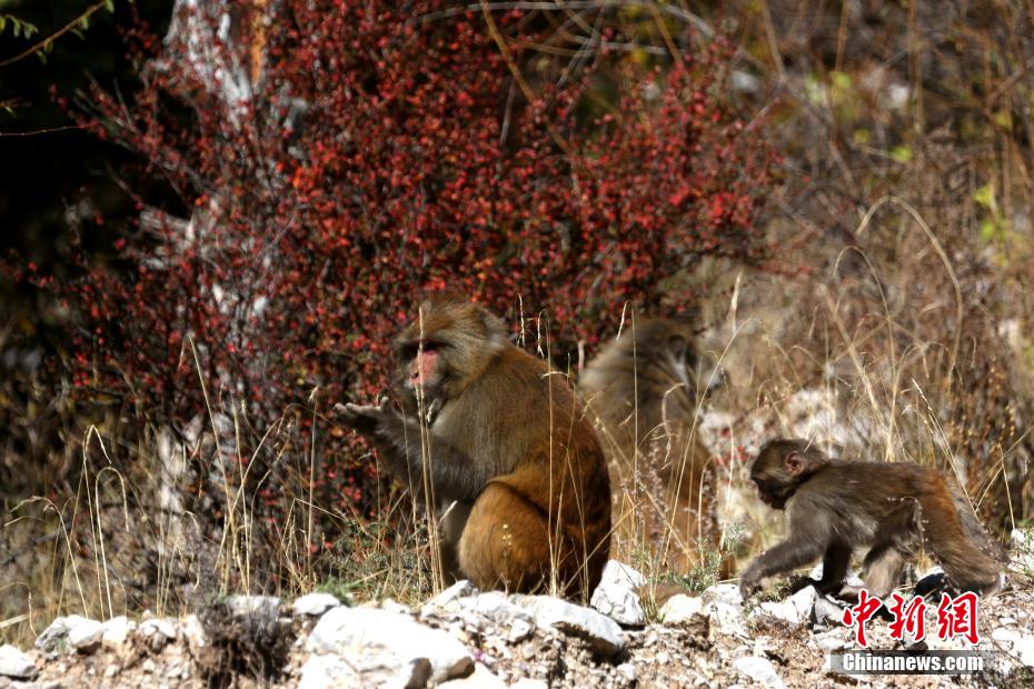 圖為林區(qū)內的藏獼猴。張希紅 攝