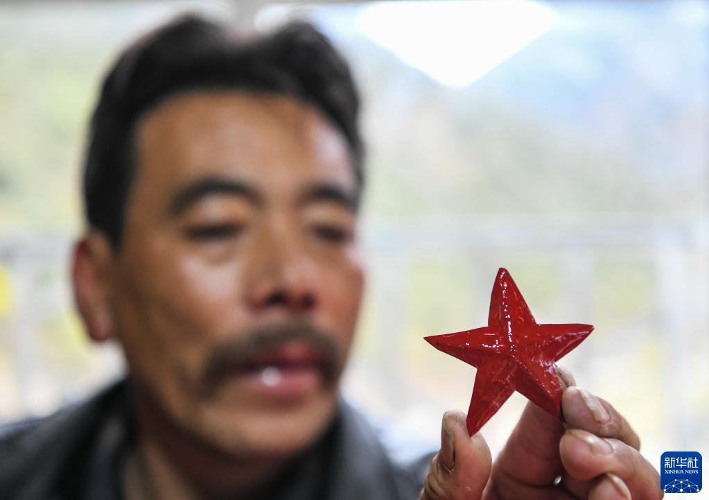對(duì)于打乙西村老鄉(xiāng)而言,紅色的五角星一直閃耀在山谷間。桑安只要一看到紅色的材質(zhì),就情不自禁地想要制作五角星。而白瑪扎西現(xiàn)在無論走到哪,都戴著紅色五角星的帽子。
