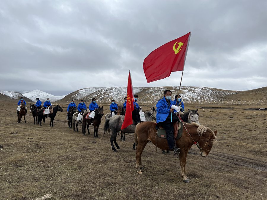 “每年冬季,牧民就會轉(zhuǎn)場到冬季牧場,牧區(qū)的道路常年被風雪覆蓋,車輛難以通行,只能由我們騎著馬到每家每戶進行宣講?!比识喱敶逦瘯敝魅蔚兰f,為了將黨的政策第一時間傳遞給牧民群眾,當?shù)氐穆?lián)戶長、牧民群眾組建了馬隊前往牧區(qū)進行宣講,牧民群眾親切地稱他們?yōu)椤榜R背宣講隊”。