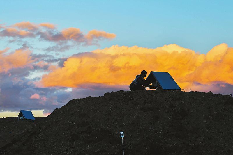 2018年8月14日,科研人員在海子山上安裝觀測(cè)儀器。