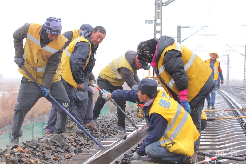 深秋時(shí)節(jié),在青海省海西蒙古族藏族自治州,巴音河畔的德令哈市雨雪飄揚(yáng)。在鄰近德令哈站的鐵路區(qū)間上,170余人正在火熱工作中。