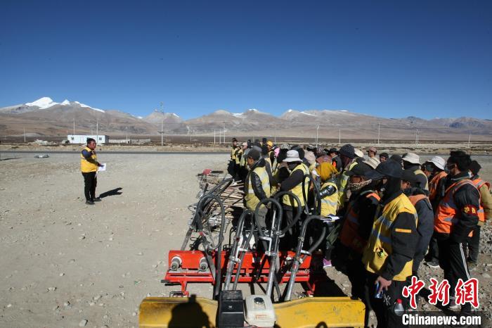 圖為當(dāng)雄車間主任郝二小在班前會上技術(shù)交底。中鐵十二局集團鐵路養(yǎng)護公司當(dāng)雄車間供圖