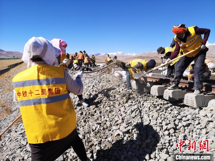 圖為工人在達瓊果站搬運新砟。中鐵十二局集團鐵路養(yǎng)護公司當(dāng)雄車間供圖