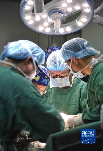 2020年1月16日,在甘孜州人民醫(yī)院,王文濤(左)進行“體外肝切除聯(lián)合自體肝移植手術”。新華社記者 劉坤 攝