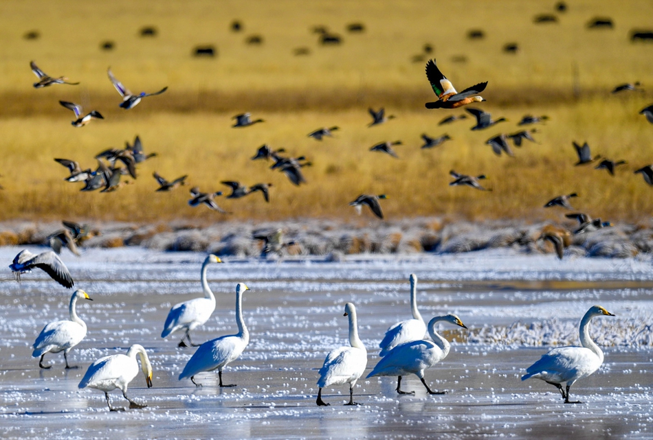 “碌曲縣依托“黃補(bǔ)”區(qū)項(xiàng)目先后將湖邊的尕海鎮(zhèn)、鎮(zhèn)屬機(jī)關(guān)單位遷移出了核心區(qū),將居住在尕海湖邊的牧民群眾實(shí)施了整村搬遷,有效減緩了對侯鳥的干擾?!备拭C尕海則岔國家級自然保護(hù)區(qū)管護(hù)中心尕海保護(hù)站站長香毛吉說,隨著尕海濕地生態(tài)的持續(xù)改善,為大天鵝提供了穩(wěn)定的越冬水位、豐富的濕地食物,在尕海境內(nèi)越冬的大天鵝數(shù)量逐年增加。