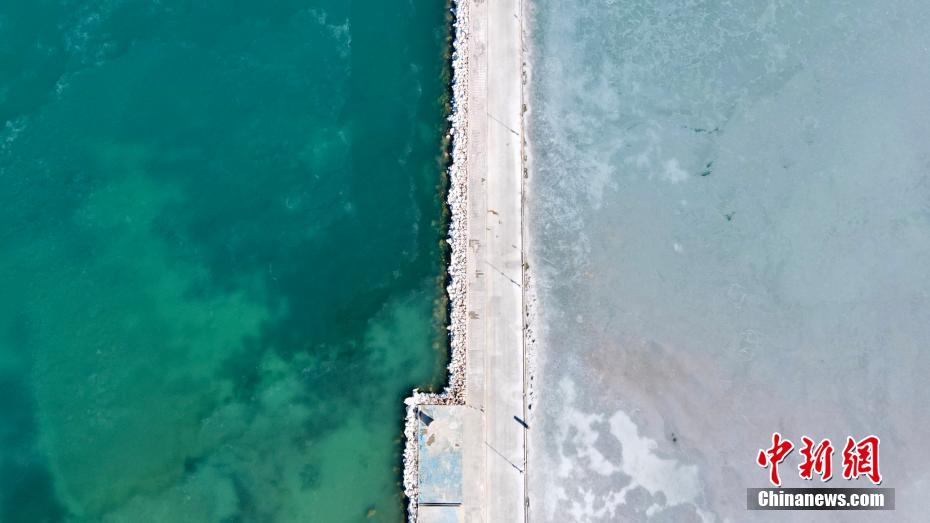 12月21日,航拍冬日青海湖。冬日青海湖周?chē)姆e雪將湛藍(lán)的湖面包裹起來(lái),不斷上凍的湖面猶如一面鏡子。(無(wú)人機(jī)照片) 中新社記者 李江寧 攝