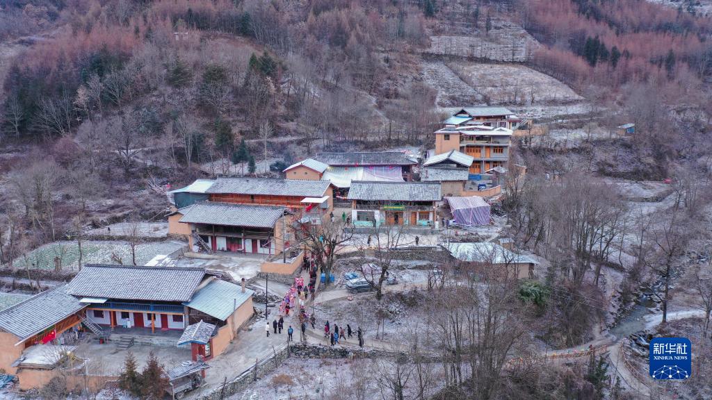 這是1月13日拍攝的隴南市文縣鐵樓藏族鄉(xiāng)寨科橋村(無人機(jī)照片)。新華社記者 郎兵兵 攝