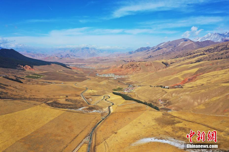 一場春雪過后,青海省海北藏族自治州祁連山國家公園青海片區(qū)群山被白雪覆蓋,云霧繚繞,金色的草場、潔白的羊群和蔚藍(lán)的天空相映成趣,美不勝收。馬銘言 攝