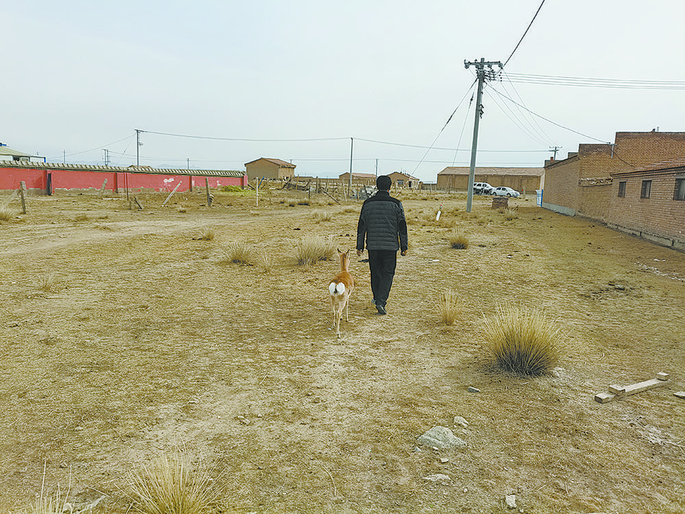 3月24日,記者第3次來到青海省海北藏族自治州剛察縣哈爾蓋鎮(zhèn)環(huán)倉秀麻村,拜訪一位叫周增本的牧人。找尋他的緣由,是因為他們家添了一位可愛而又特殊的“家庭成員”——一只小普氏原羚。