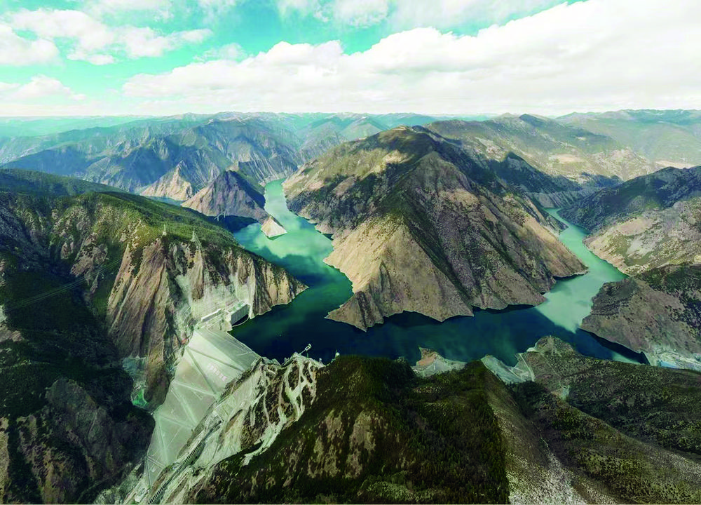 就在2022年3月18日,該水電站6臺(tái)50萬千瓦機(jī)組全部投產(chǎn)發(fā)電,年發(fā)電量超過110億千瓦時(shí)。正是這樣一座總填方量相當(dāng)于6個(gè)鳥巢體積的大壩在曾經(jīng)的“雅礱古渡”造就了一個(gè)壩前最大水深285米的“超級(jí)水庫”,構(gòu)筑起一個(gè)全國調(diào)節(jié)效益最好、總庫容108億立方米的巨型人工湖,大小與770個(gè)杭州西湖的蓄水量相當(dāng)。