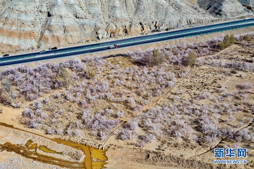 在黃河岸邊,邂逅花開成海的浪漫,感受春天的氣息。新華網(wǎng) 宋忠勇 攝