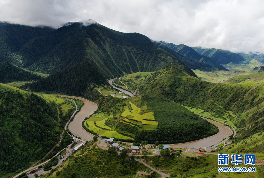 在青海省果洛藏族自治州班瑪縣境內拍攝的瑪可河(無人機照片)。新華社記者 張龍 攝