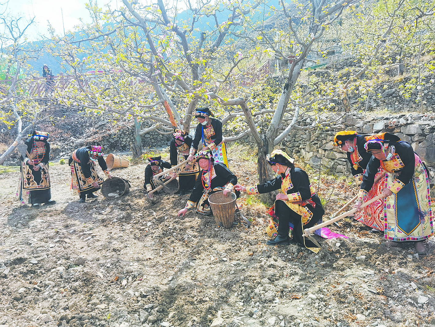 “老百姓看到蘋果花就看到了希望,期待蘋果產(chǎn)量高,品質(zhì)更好,能賣個好價錢,讓我們的日子越來越紅火?!贝迕裰鞂W(xué)燕邊忙碌邊告訴記者。眼下正是蘋果樹急需補充營養(yǎng)的時候,同朱學(xué)燕一般,在蘋果樹下,村民們正忙著施肥、松土、拔草、澆水。
