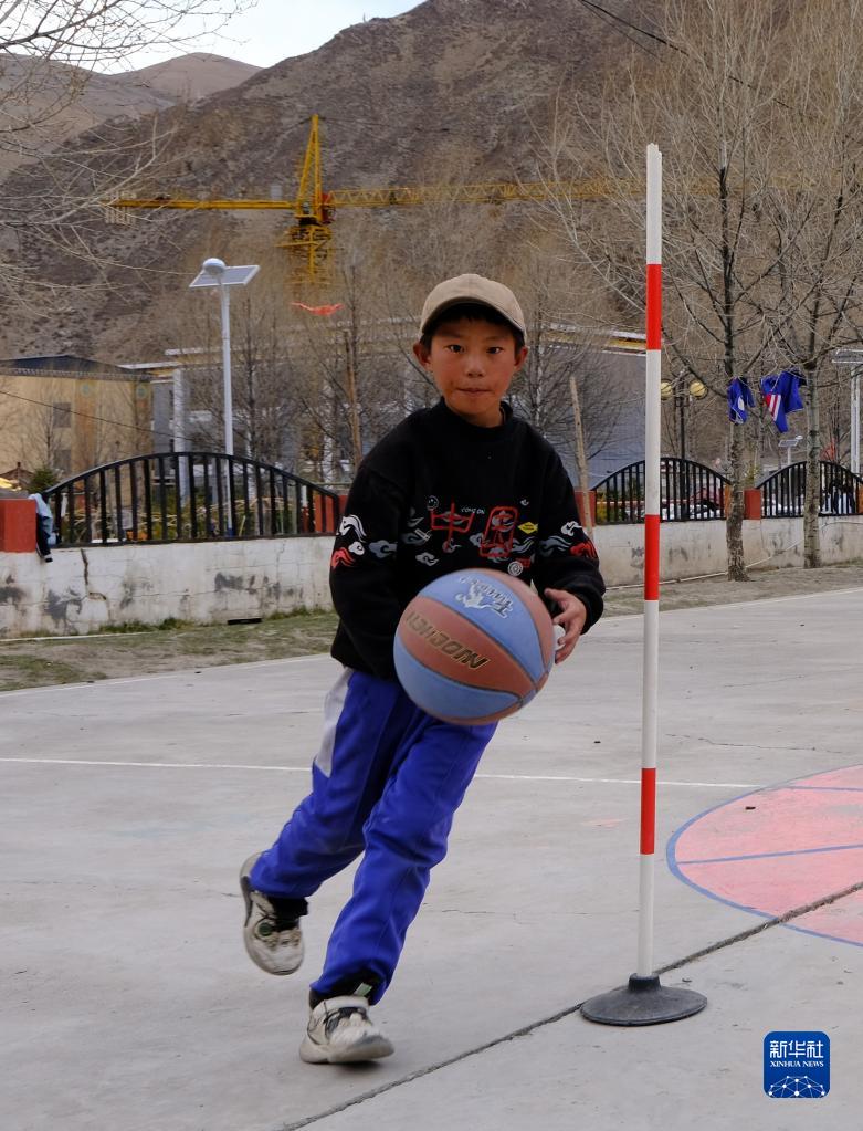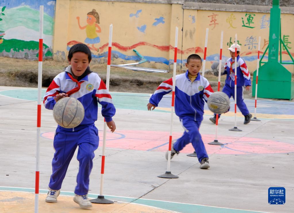 4月18日,稱多縣文樂中心寄校籃球社團的學(xué)生在活動。新華社記者 央秀達珍 攝