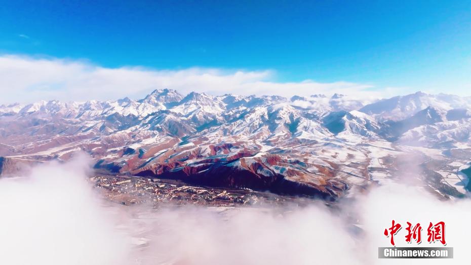 一場春雪過后,青海省海北藏族自治州祁連山國家公園青海片區(qū)群山被白雪覆蓋,云霧繚繞,金色的草場、潔白的羊群和蔚藍(lán)的天空相映成趣,美不勝收。[詳細(xì)]