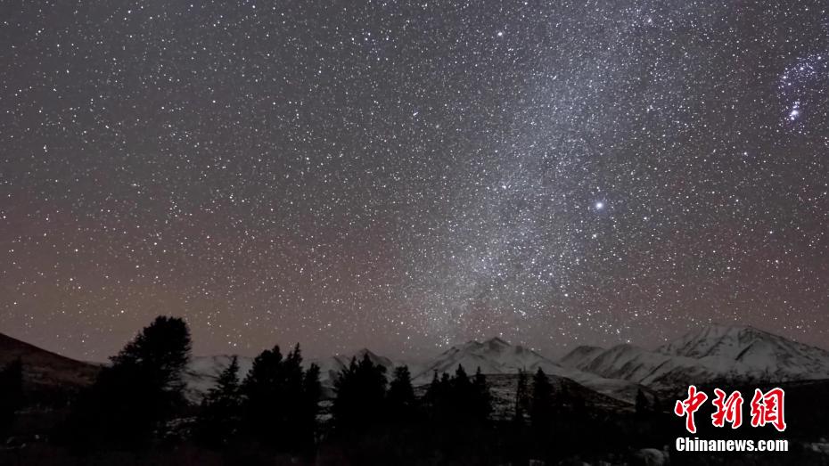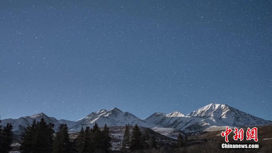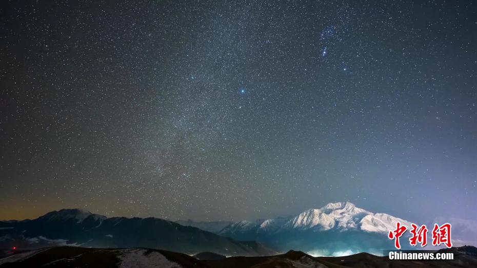 近日,攝影愛好者在位于祁連山腹地的青海省海北藏族自治州祁連縣,用延時攝像的方式記錄下鮮有人知的春日祁連山壯麗星河和絕美晨曦。祁連山海拔在4000米至6000米之間,海拔4000米以上的地方,稱為雪線,一般而言,冰天雪地,萬物絕跡。雪線之上,夜晚布滿繁星的銀河是祁連山最美奇觀之一。清晨,銀白的曙光漸顯緋紅,朝霞映在當(dāng)?shù)孛癖娦闹小吧裆健迸P纳缴?,“神山”宛如少年俊朗?jiān)毅。馬志原 攝
