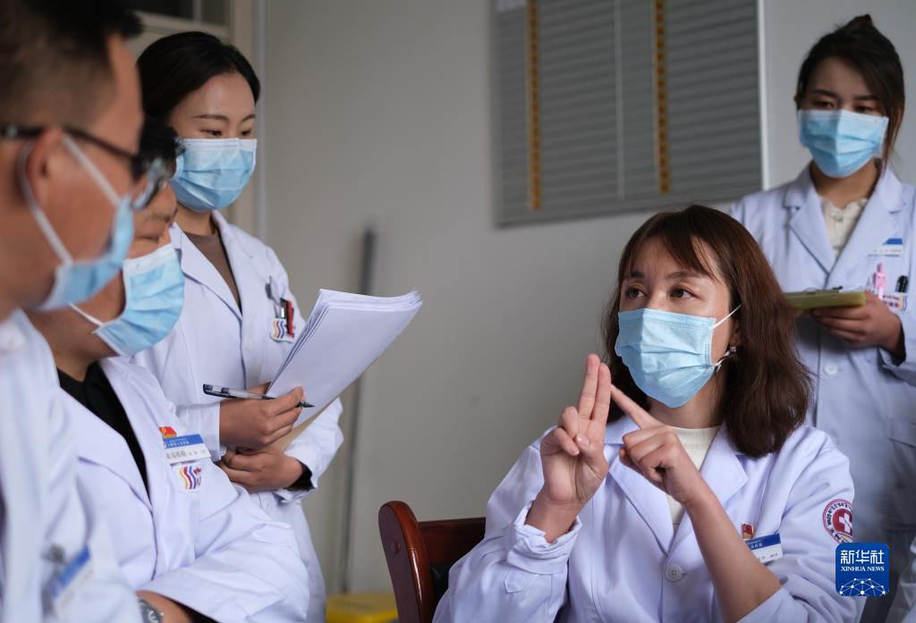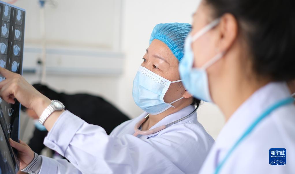 4月25日,青海省人民醫(yī)院醫(yī)生、青南支醫(yī)隊員謝延玲(右二)和青海省玉樹藏族自治州人民醫(yī)院醫(yī)生探討患者病情。新華社記者 央秀達珍 攝