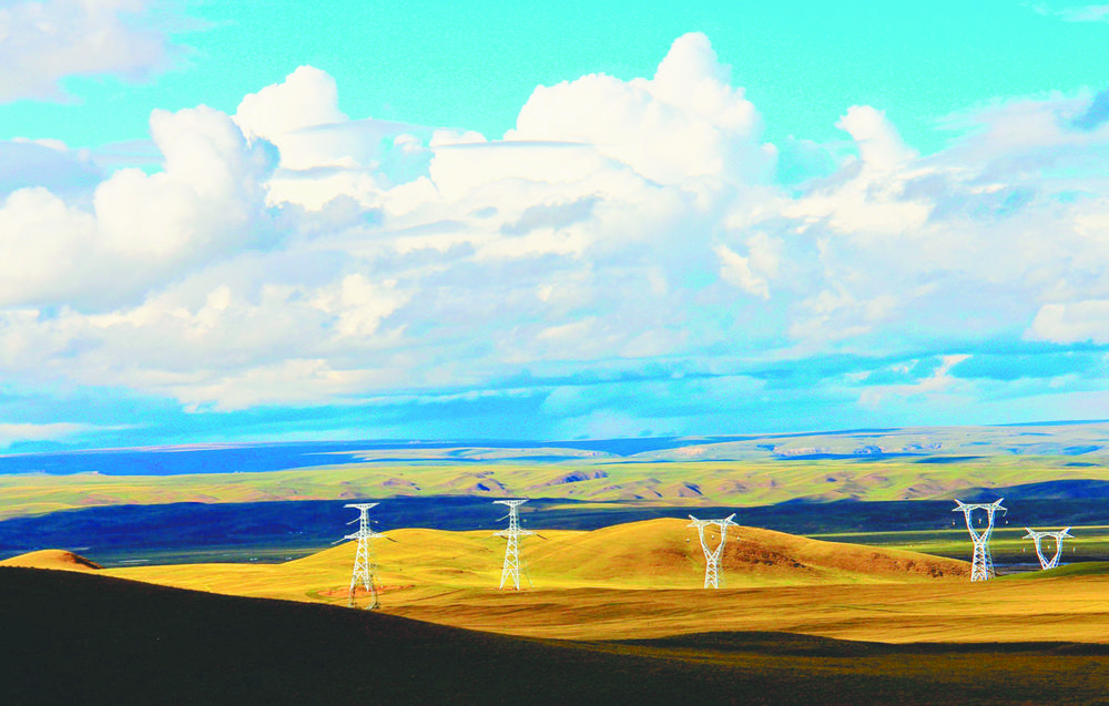 野外,銀線飛架在草原青山間,大電網(wǎng)縱橫雪域高原,將綠色電能源源不斷輸送到各行各業(yè),注入經(jīng)濟(jì)發(fā)展的能源動脈,也滿足人民生活的用電需求。