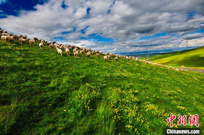 圖為天峻縣境內(nèi)的草場(chǎng)上羊群在奔跑。天峻縣委宣傳部 供圖