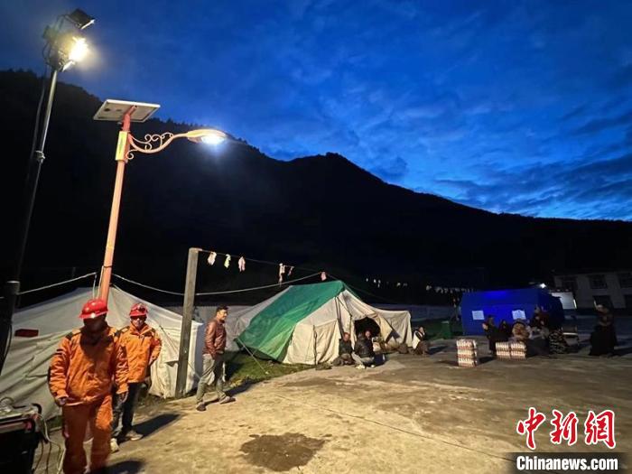 震中臨時安置點(diǎn)燈亮了?!∷拇娏﹫D
