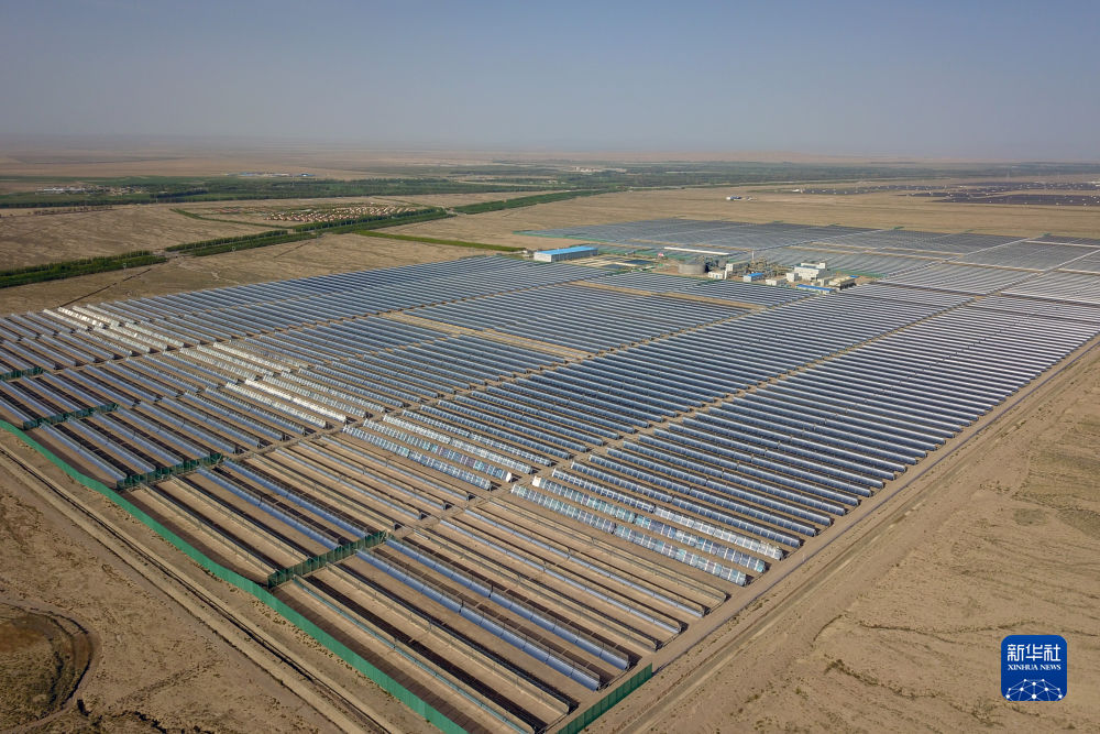這是6月8日在海西蒙古族藏族自治州德令哈市光伏(光熱)產(chǎn)業(yè)園拍攝的青海中控德令哈50兆瓦光熱電站。新華社記者 范培珅 攝
