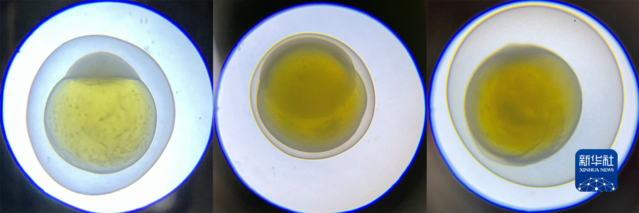 這是一張拼版照片,從左往右依次為6月13日至15日顯微鏡觀察的小頭裸裂尻魚受精卵發(fā)育情況。受訪者供圖