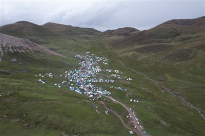 對(duì)理塘人來說,蟲草一直是大部分農(nóng)牧民的主要收入。雖然今年采集蟲草的人不及往年,但阿加溝依然涌進(jìn)了上萬(wàn)人。6月8日下午,部分采集者已經(jīng)下山,營(yíng)地里尚有數(shù)百個(gè)帳篷錯(cuò)落有致地搭建在道路兩邊的草地上,人們都去了山上,整個(gè)山谷一片沉靜。只有傍晚六七點(diǎn)的時(shí)候,人們才像雪水一樣從山上匯聚下來,這里才變得熱氣騰騰。