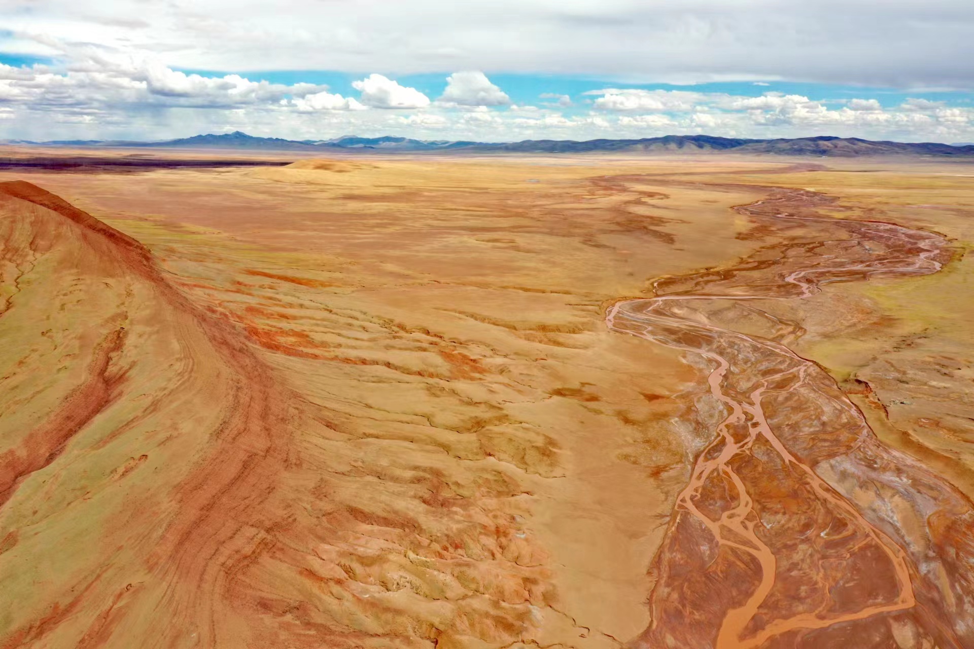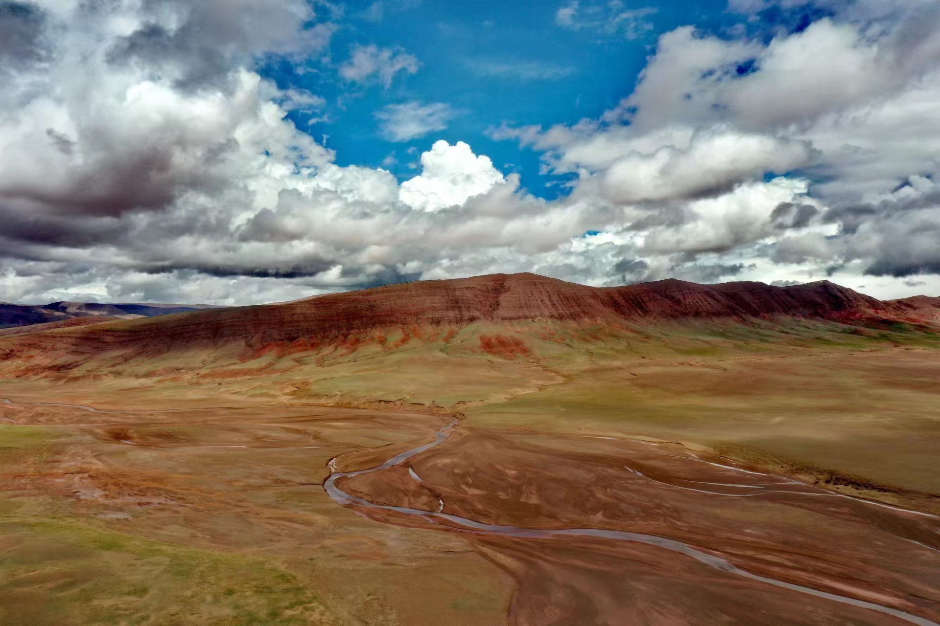 近日,中國地質(zhì)大學(xué)(武漢)長江科考先遣隊(duì)員張永一行進(jìn)行綜合科學(xué)考察時(shí),在青藏公路日阿尺曲一帶發(fā)現(xiàn)一條紅色山脈,是青藏高原109國道沿線一處壯觀的地質(zhì)遺跡。該山脈由晚白堊紀(jì)鈣質(zhì)膠結(jié)的粉、細(xì)砂巖與古近紀(jì)紫紅色、磚紅色復(fù)成份礫巖所組成,呈近東西走向,兩坡不對稱,南陡北緩,地層剖面出露清楚。