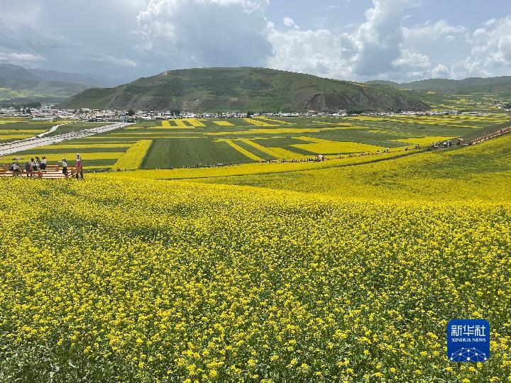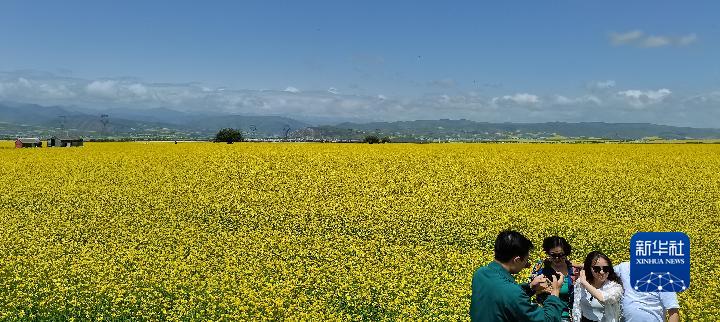 盛夏時(shí)節(jié),從青海省會(huì)西寧出發(fā),沿張汶高速公路驅(qū)車1個(gè)多小時(shí),就進(jìn)入門源回族自治縣境內(nèi)。油菜花鋪展出“金色花海”,天地間融為一幅濃墨重彩的天然畫卷。