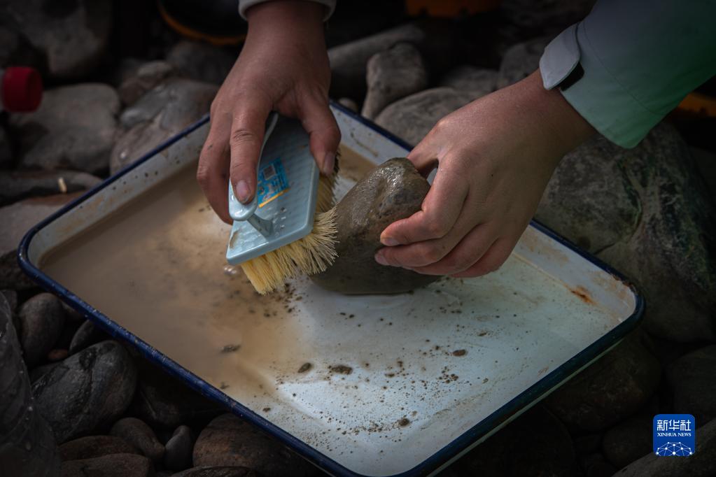 7月25日,長江科學(xué)院科考隊(duì)員在采集底棲動(dòng)物樣本。 新華社記者 肖藝九 攝