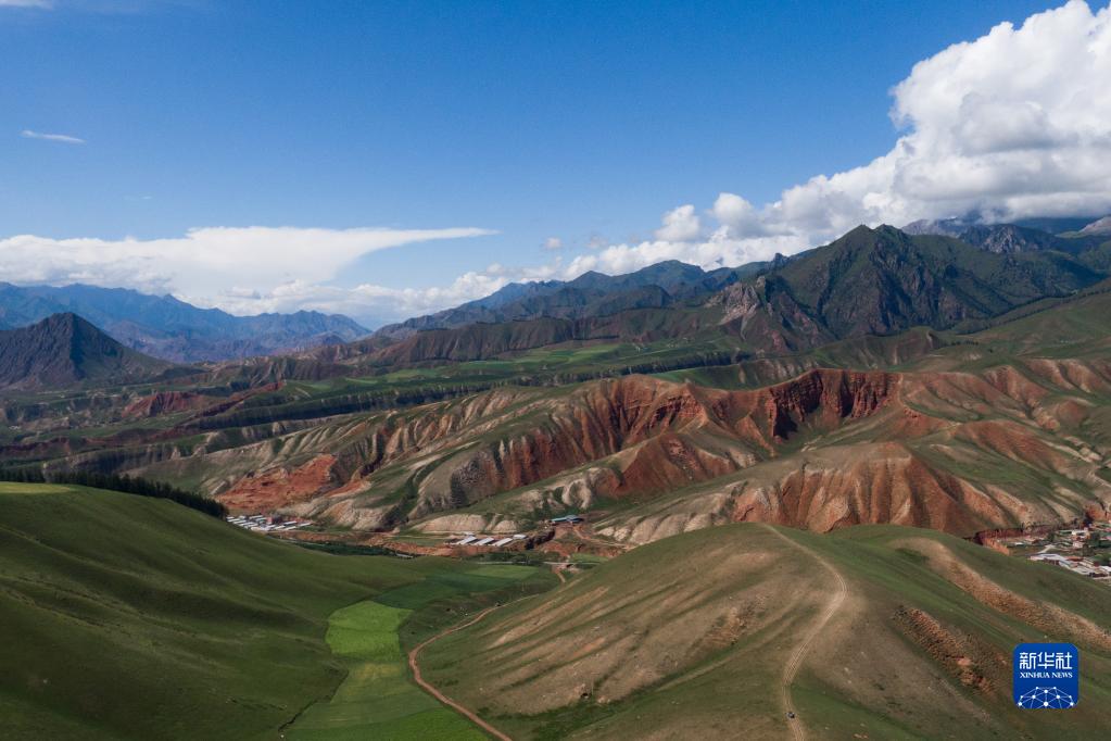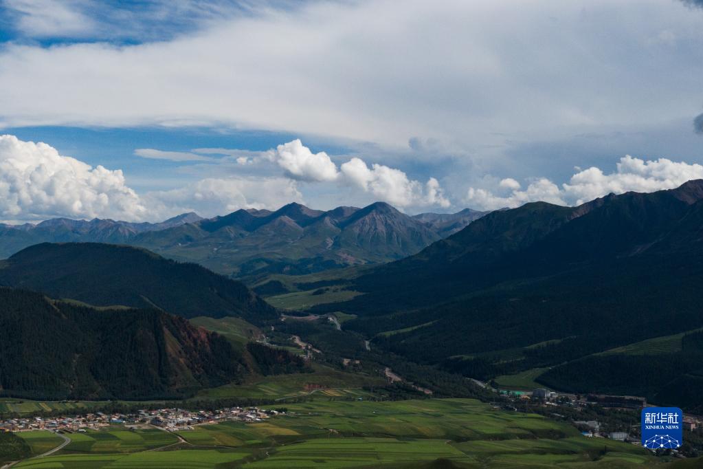 青海省海北藏族自治州祁連縣風(fēng)光(8月10日攝,無(wú)人機(jī)照片)。新華社記者 張龍 攝