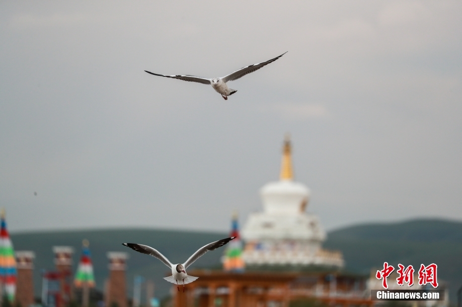 8月11日,青海省海北藏族自治州剛察縣,沙柳河國(guó)家濕地公園內(nèi)的水鳥(niǎo)自由飛翔。中新社記者 賈天勇 攝