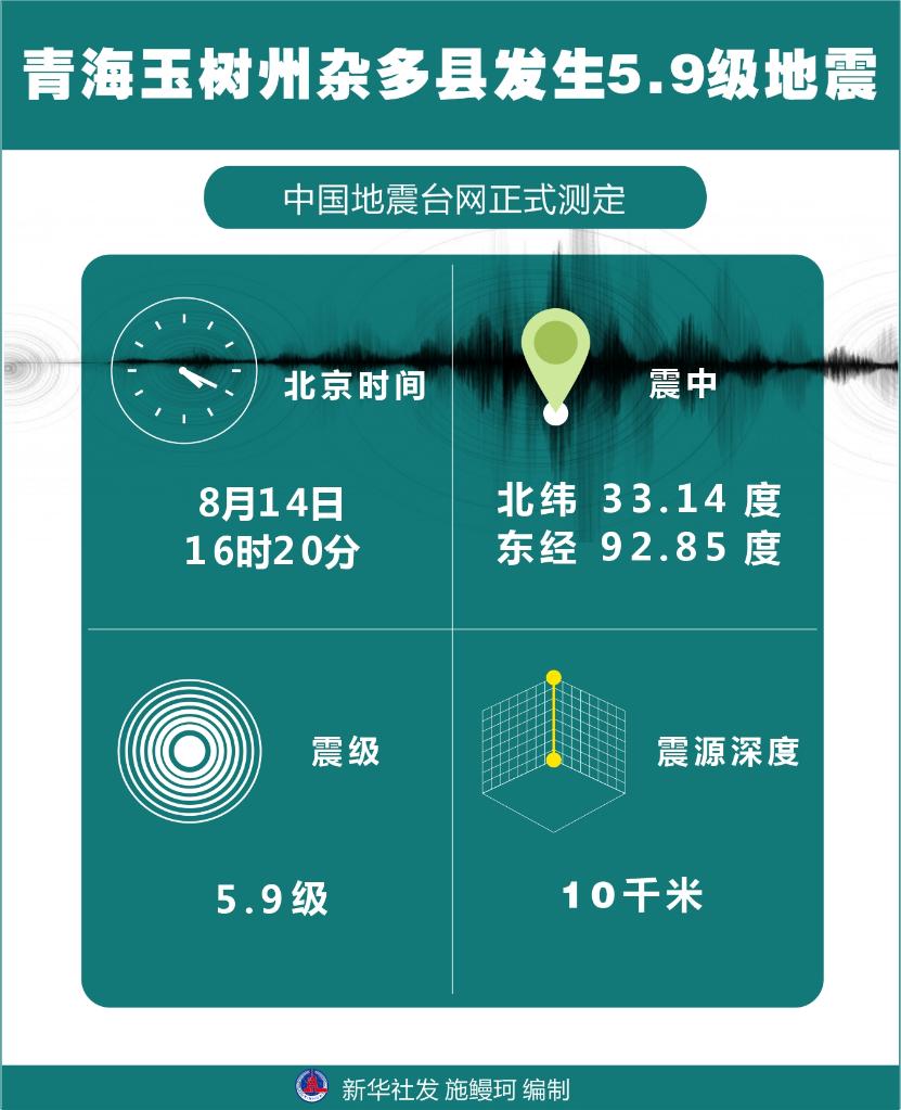 青海省玉樹藏族自治州雜多縣發(fā)生5.9級地震