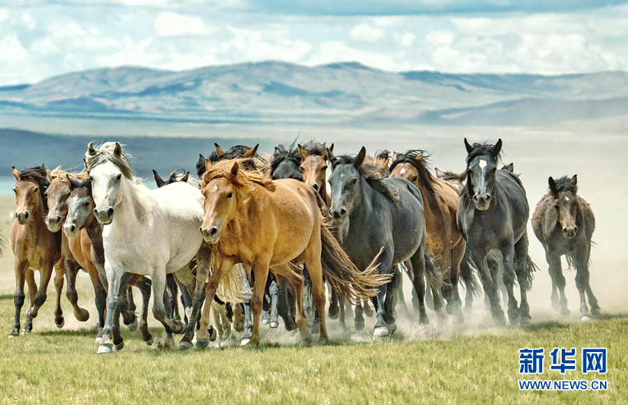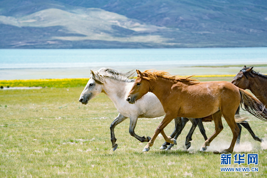阿拉克湖國(guó)家濕地公園內(nèi),奔跑的駿馬。