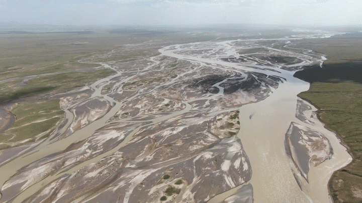 周銀軍說,在青藏高原上,江源河床下多是凍土,河水很難向下侵蝕。加上兩岸沒有山體形成自然約束,也不像平原地區(qū)修建堤防、護(hù)岸等水利工程,長(zhǎng)江源地區(qū)河流水量大、水流快時(shí),河道沖刷以橫向變形為主,因此河床呈現(xiàn)千變?nèi)f化狀態(tài)。