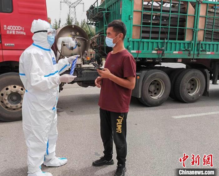 圖為吳遠(yuǎn)孝在高速卡口對進(jìn)入德令哈市區(qū)的車貼封條?!沁h(yuǎn)孝 供圖
