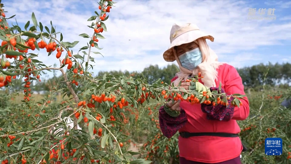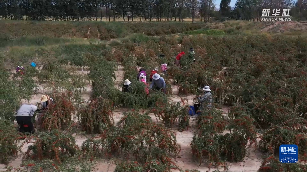 金秋時(shí)節(jié),在位于柴達(dá)木盆地東南部的青海省海西蒙古族藏族自治州都蘭縣,20余萬畝枸杞迎來豐收季,紅玉般晶瑩剔透的果實(shí)壓彎了根根枝條,采收工人抓緊采收,爭(zhēng)取更好地保持枸杞的新鮮度。