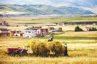 秋天的平原、河谷、山野里,大片大片的青稞翻滾著麥浪,金黃耀眼,如同一塊塊黃色、喜悅、飄飛著麥香的金色云朵,綿延到天與地的盡頭。農(nóng)民在麥田間忙著彎腰、揮鐮、系起青稞束,紅臉蛋綻滿喜悅,向大地和來往的人訴說著大自然的饋贈。高原上人們臉上的“高原紅”是地理、氣候環(huán)境等造成的面部紅血絲,但沒有人會否認,這也是一種勤勞的美。在阿壩縣,這種勤勞與汗水澆灌出累累碩果:青稞、蔬菜、中藥材、牧草等基地規(guī)模達12.3萬畝,年接待游客近100萬人次,農(nóng)村居民人均可支配收入增長9.7%……