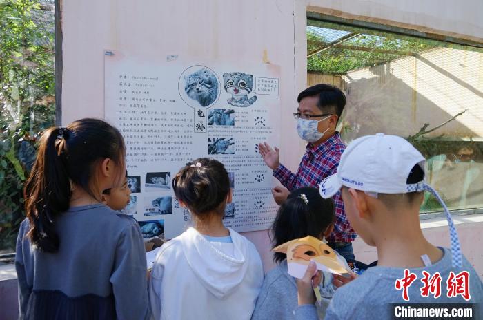 圖為青海野生動(dòng)物救護(hù)繁育中心副主任向?qū)W生介紹荒漠貓。馬銘言 攝
