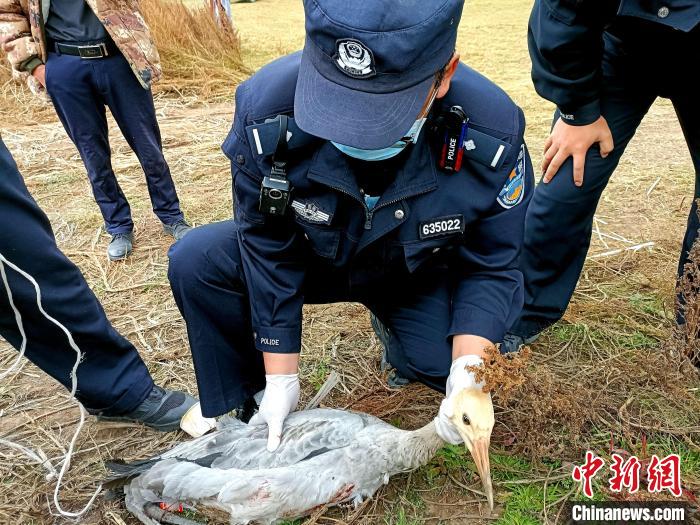 青海門源警方救助國家一級保護(hù)動物黑頸鶴