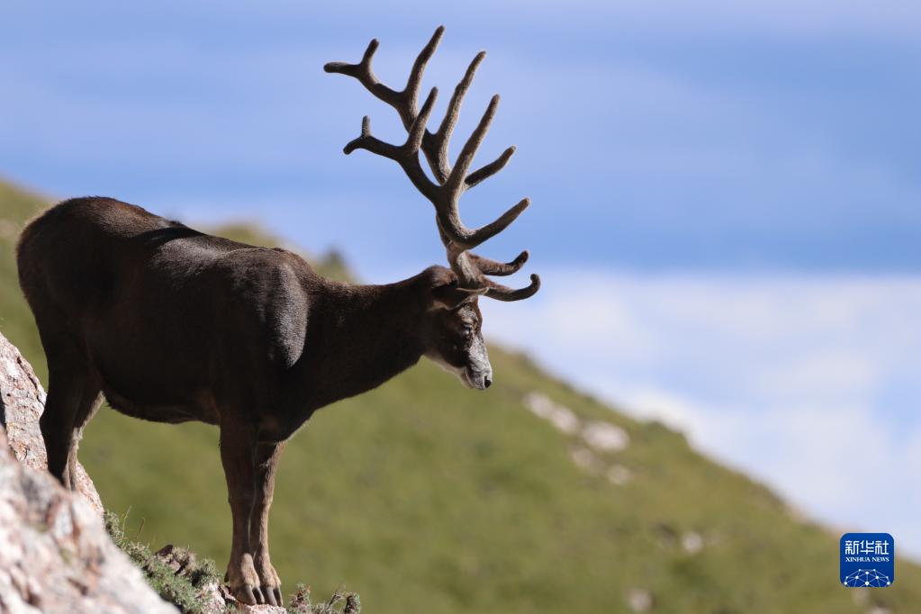 這是在青海省玉樹藏族自治州雜多縣境內(nèi)的昂賽大峽谷拍攝的白唇鹿(8月5日攝)。新華社發(fā)(達(dá)杰朋措 攝)