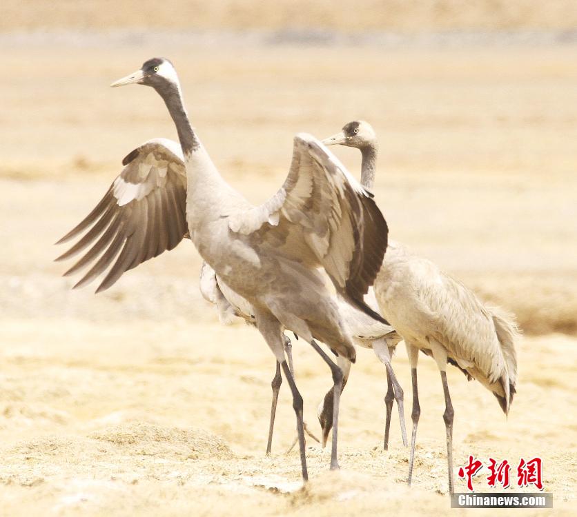 圖為灰鶴舞動身姿。才讓扎西 攝