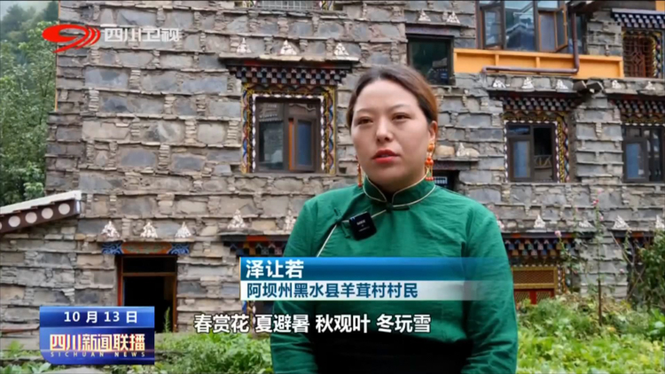 阿壩州黑水縣羊茸村村民 澤讓若:春賞花,夏避暑,秋觀葉,冬玩雪,越來越多的游客來到我們這兒,以前是不敢想的。